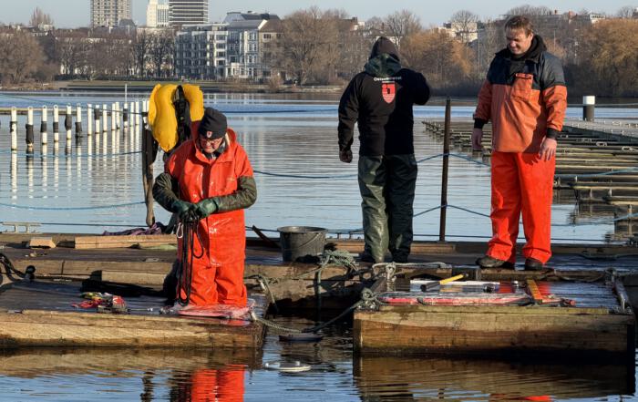 Bei strahlendem Sonnenschein und angenehmen Temperaturen machen die Arbeiten an der Steganlage weiter zügig Fortschritte.