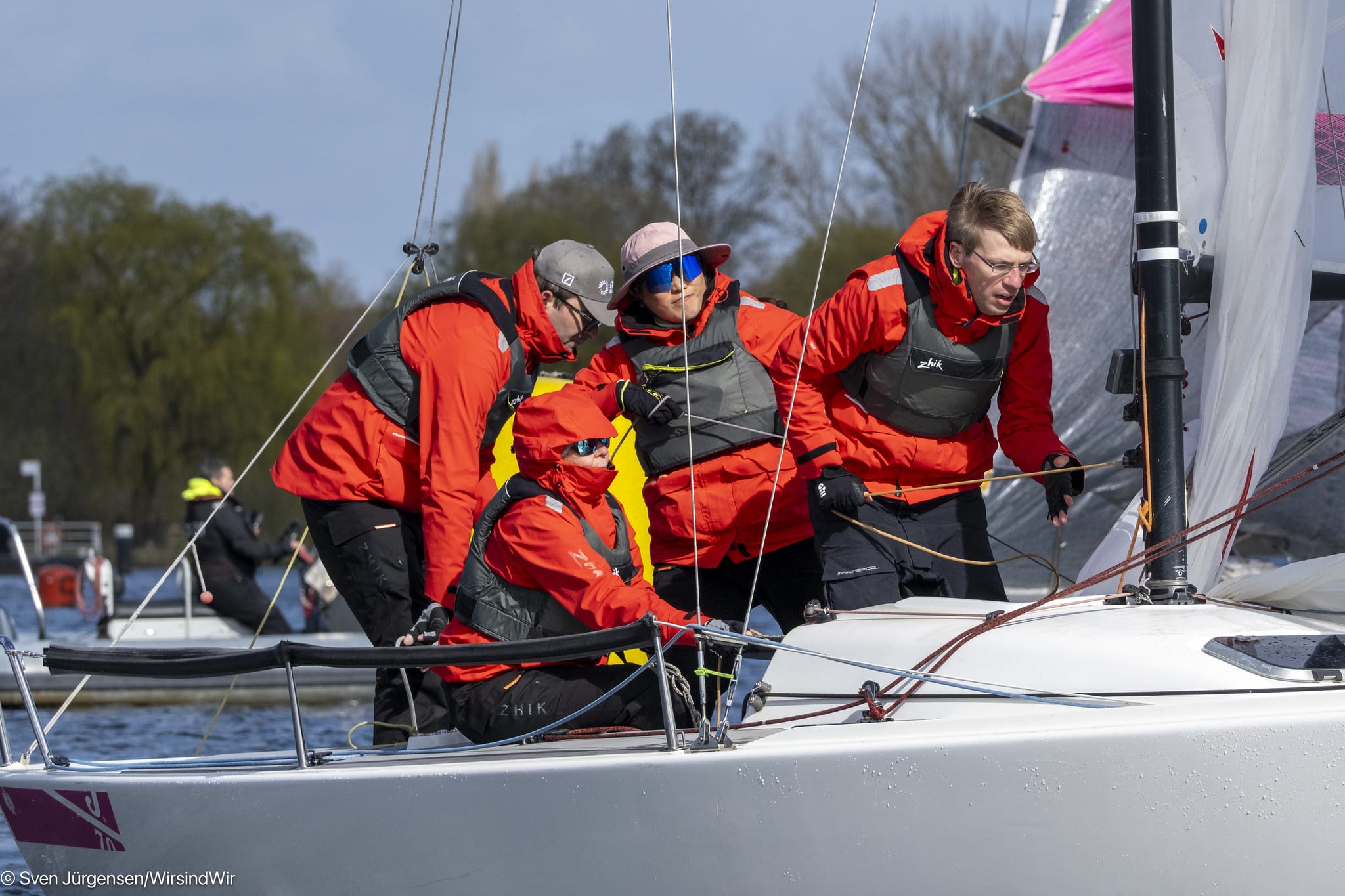 Den Sieg in der größten Klasse des Wochenendes sicherte sich Mats Schönebeck (NRV) und Crew. Platz zwei ging an Valentino Friedrich (MSC) und Crew, Dritter wurde Philipp Schrader (BYC) und Crew.