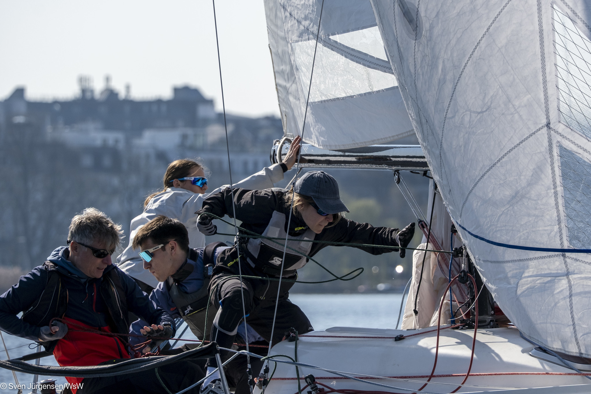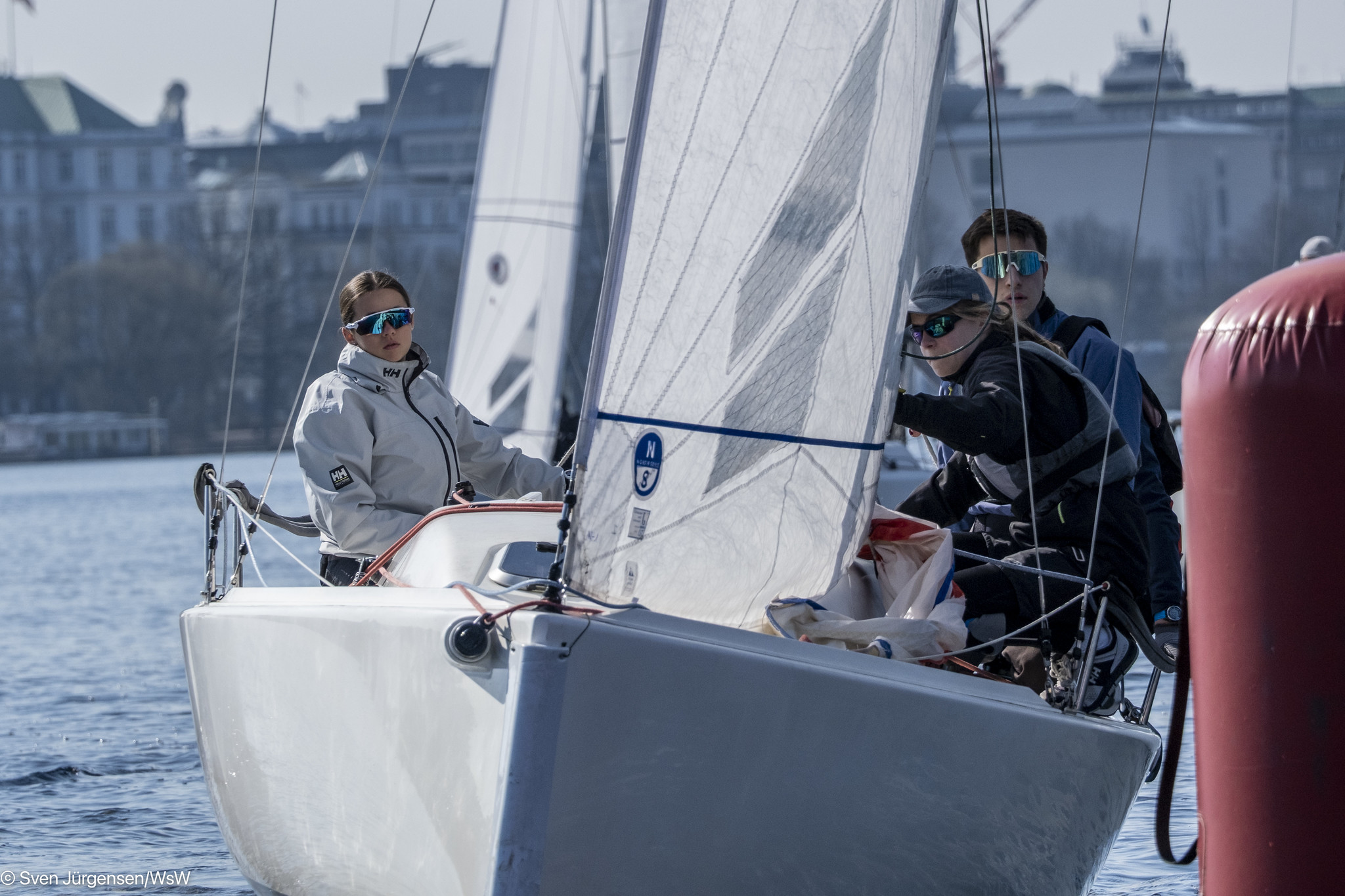 Am vergangenen Wochenende (21.–22. März) nahm der HSC mit zwei Teams und den Club J/70 „Jubilee” und „Jubiluv” an der alljährlichen NRV-Frühjahrsverbandsregatta auf der Alster teil. Auf der „Jubilee” segelte ein neu formiertes Juniorenteam mit Mia Hahn, Marie Zerbst und Ole Griem. Unterstützung bekamen sie von Sebastian Weiner, der in der Vergangenheit nicht nur für den HSC, sondern auch für die „Entdecker” und in der Schweizer Liga an den Start ging, so konnte er ihnen den einen oder anderen Tipp geben und sie auf der Regattabahn unterstützen. Auf der „Jubiluv” segelte eine erfahrene Crew mit Johannes Bahnsen am Steuer sowie Mats Krüss, Lennart Grambow und Florian Prinzlin. Am Sonntag sprang Lea Beele für Lennart ein.