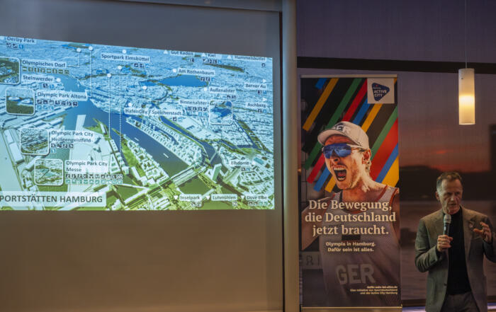 Begrüßt wurden die Gäste durch Bernadette Zipfel, Vorständin Leistungssport des HSC, bevor Staatsrat Holstein, einer der zentralen Gestalter der Hamburger Sportpolitik, das aktuelle Bewerbungskonzept vorstellte. Hamburg plant Spiele der kurzen Wege: 17 von 20 Wettkampfstätten im Stadtgebiet liegen in einem Radius von nur sieben Kilometern. Insgesamt sind 33 Wettkampfstätten mit 46 Disziplinen vorgesehen – die Segelwettbewerbe würden als olympische Kerndisziplin im Kieler Revier stattfinden. Das Olympische und Paralympische Dorf in der Science City Hamburg Bahrenfeld soll Platz für 16.000 Aktive bieten und nach den Spielen als barrierefreier Wohnraum für rund 9.000 Menschen dienen – mit 56 Prozent geförderten Wohnungen.