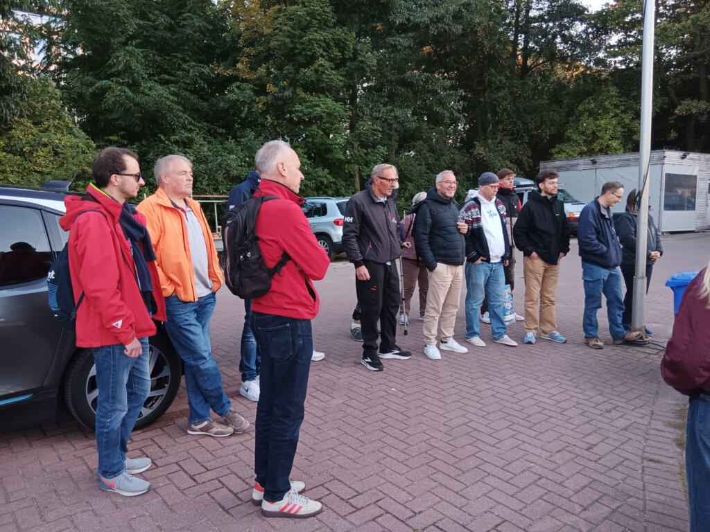 Am Mittwochabend versammelte sich eine kleine Gruppe von HSCer/innen am Kran, um der Taufe der zweiten J70 beizuwohnen.